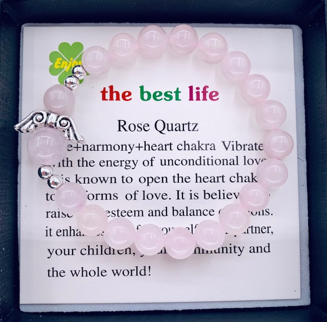 8mm Engelen Armband met Doos - Rozenkwarts