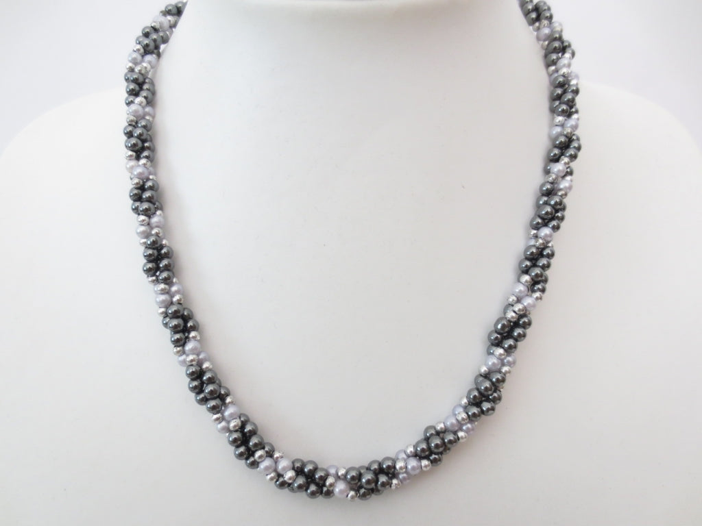3 lagen kralen ketting zilver