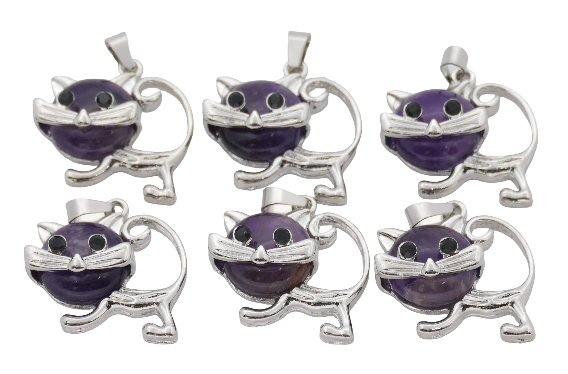 Groothandel – Amethist Kat Edelsteen Hangers (Set van 6 Stuks)