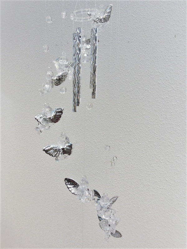 Nieuwe Engel Windgongs met 4 kleine Engelen zonder resten. Größe Engel: 4 cm breit en 4 cm lang. Windgong insgesamt 70cm lang.