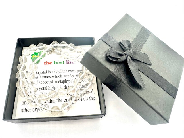 Großhandel – 8 mm Bergkristall-Perlenkette (met Schachtel)