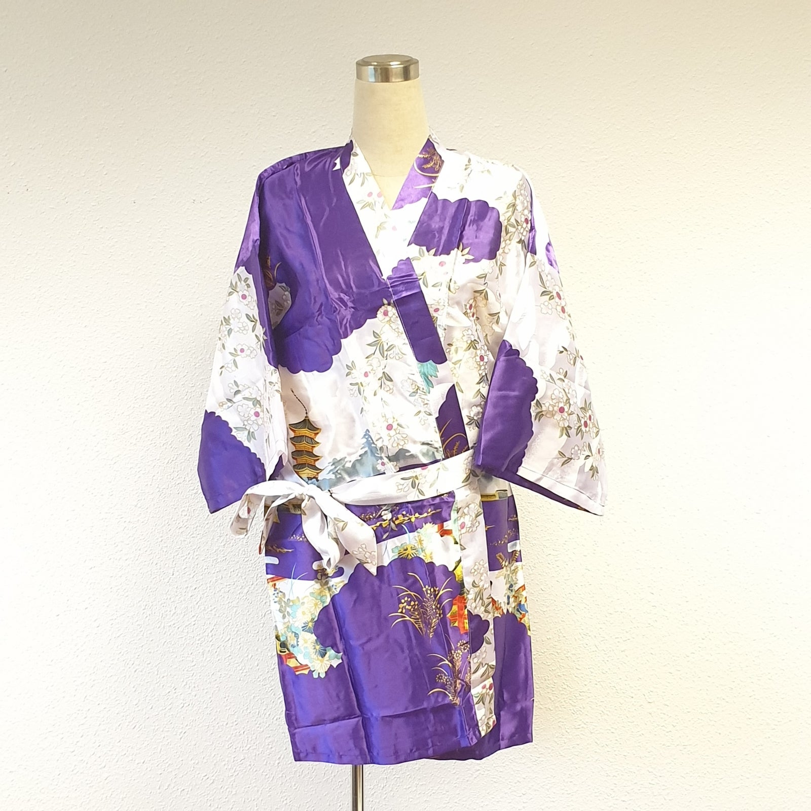 Der kurze japanische Kimono hat eine Größe en ist in verschiedenen Farben erhältlich.\n Maße:\nLengte: 90cm\nSchulter - Schulter: + / = 55 cm