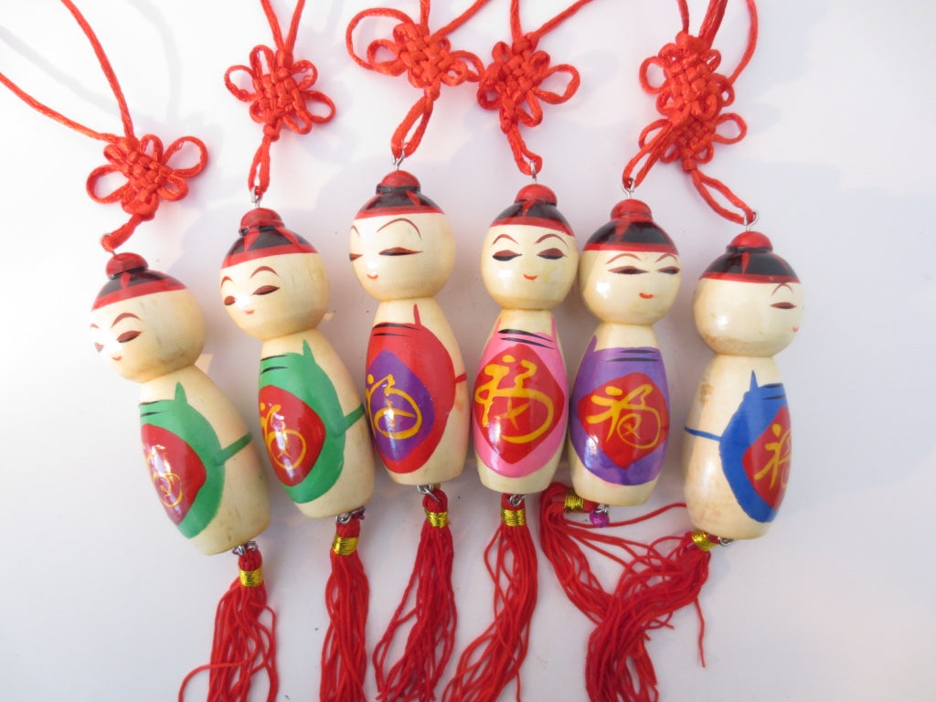 De gelukspoppetjes zijn van hout. Het is leuk om te geven bij een speciaal moment.\nHet gelukspoppetje kun je ophangen aan je tas, in de auto, enz...\n6 stuks gelukspoppetje in een zakje met 5 van 6 verschillende kleuren.