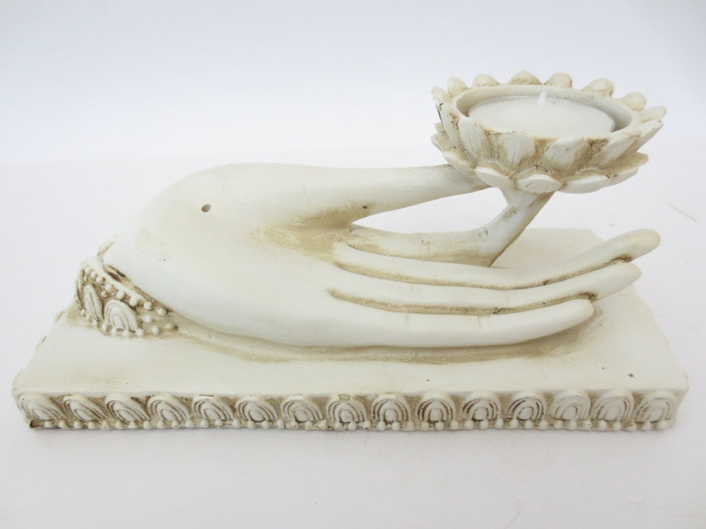 Witte wierookhouder hand met theelichtje\nU kunt het product bekijken door middel van op de afbeelding te klikken