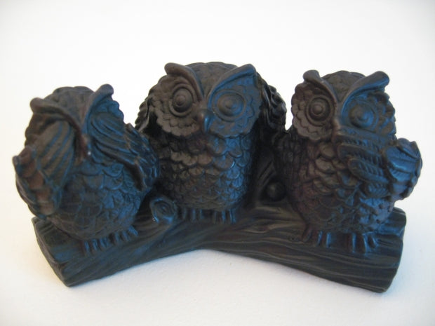 Horen, zien, zwijgen uilen beeldje\nAfmetingen: 10 bij 6 cm \nOm de prijs van dit artikel te zien en om het te kunnen bestellen dient u ingelogd te zijn. Meer informatie