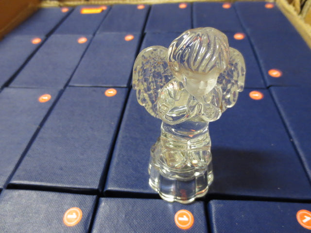 Kristallen engel geboden overdoos (60st). Aan de onderkant van het beeldje is een draaiknopje waarmee het engeltje licht kan geven.