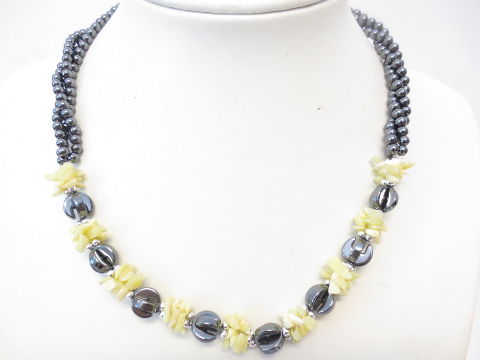 De Kette is uit de Hämatit en met Steinen gemacht. Sie ist in 10 verschiedenen Farben erhältlich.\nSie können das Produkt seehen, wenn Sie auf die Abbildung clicken.\nGröße: 45 cm lang