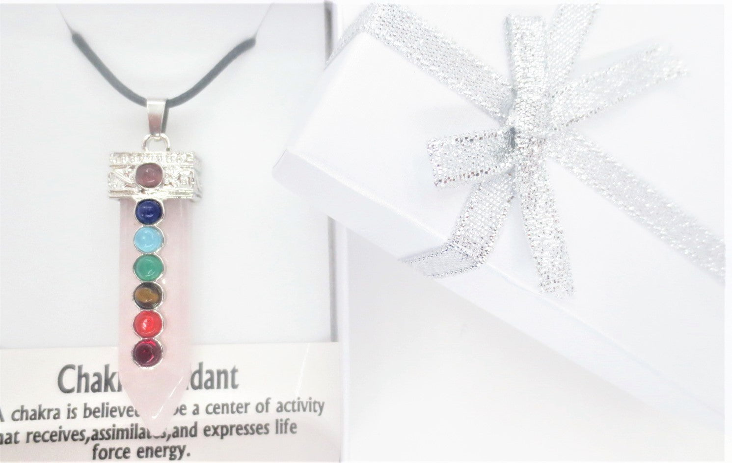 \nEdelsteen Chakra Hanger ketting met verschillende soorten edelstenen. 7 chakra kettingen verpakt in een geschenkdoos.