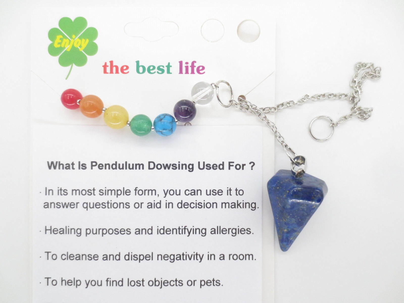 Deze pendels worden gebruikt bij aromatherapie, kruidenremedies, radionica, homeopathie, etherische olietherapie, kaartleggingen en in de healingpraktijk. Objecten in de ruimte kunnen worden beïnvloed door de eigenschappen van de (half)edelsteen van de pendel zelf. Zorg ervoor dat je pendel regelmatig wordt gereinigd, in ieder geval na elk gebruik, zodat de waarzeggerij zo helder mogelijk blijft.