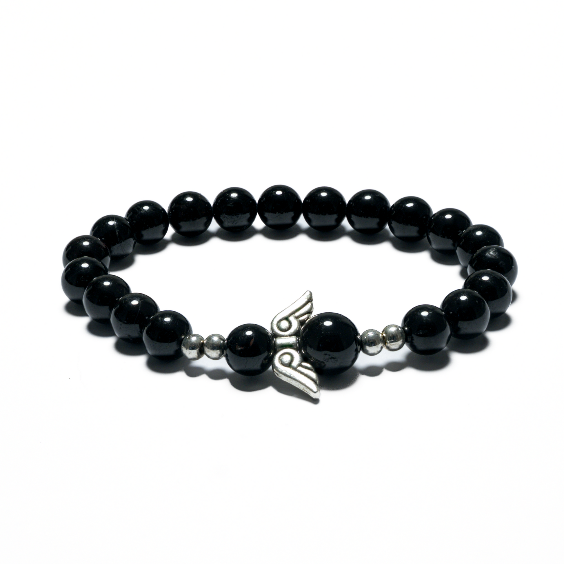8mm Engelarmband met doosje - Zwarte toermalijn