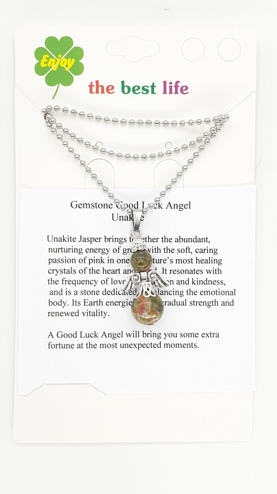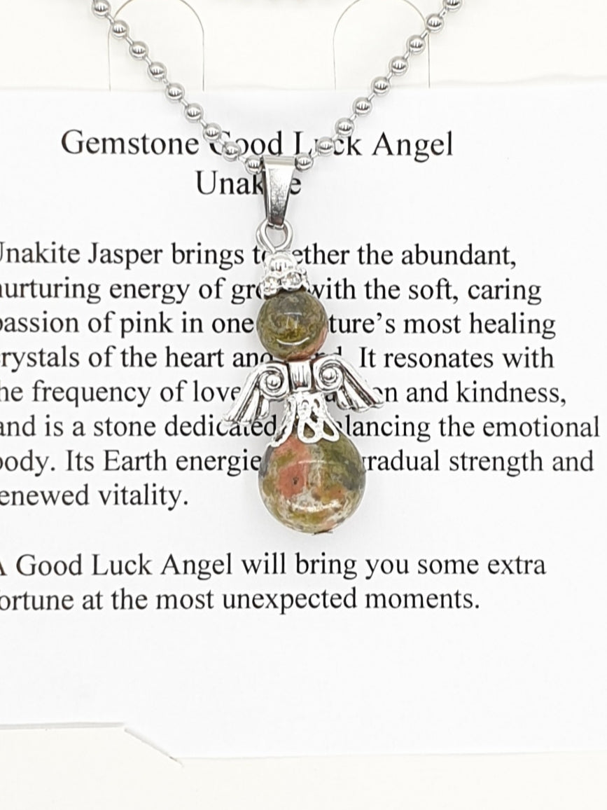 Engelenketting van Unakiet\nEngelenketting van edelsteen. Wordt geleverd in een verpakking met kaartje, beschrijving en informatie over de edelsteen.\nDe ketting is 60 cm lang en kan op maat worden geknipt.\nDe minimale afname is 2 stuks.
