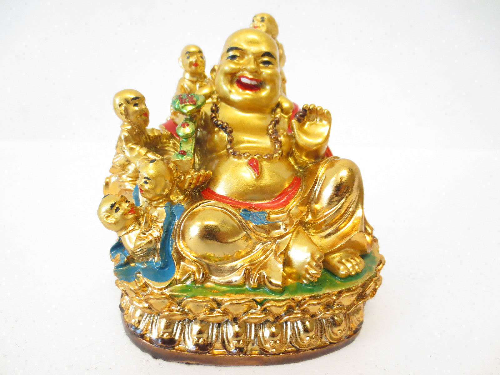 Boeddha Goud zittend met kinderen medium\nafmeting is 10x10cm