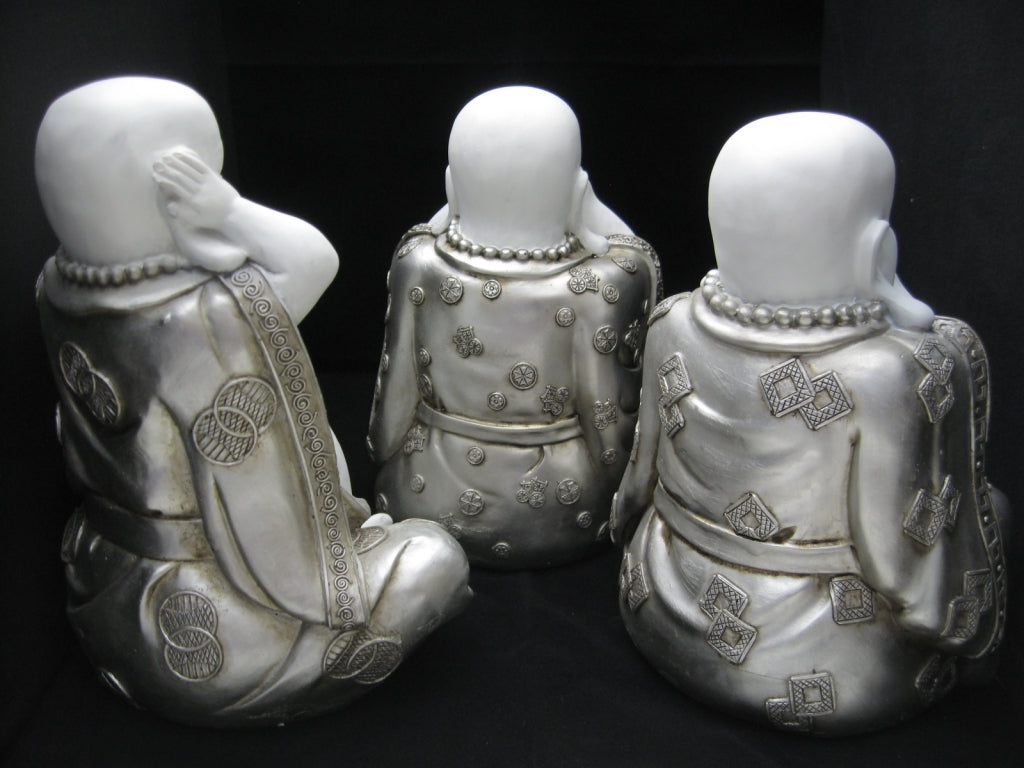 Groothandel - Hoor, zie, stilte lachende Boeddha Set Groot Wit/Zilver