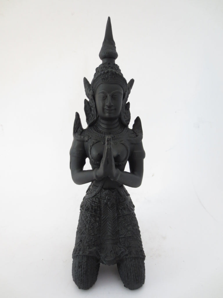 Templenoon Zwart knielend\nMateriaal: PolyresinGewicht: 395 gramAfmetingen: lengte: 7cm x hoogte: 21cm\nDe minimale afname is 2 stuks.