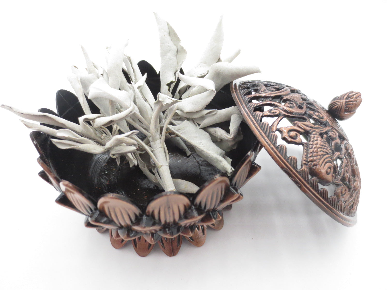 Tibetaanse Lotus Graan Wierookbrander Klein Messing Brons\nMateriaal: Messing\nGewicht: 95 gram\nAfmetingen: Breed 6 cm Hoogte 6 cm\nMinimale bestelling is 2 stuks\nPrijs is per stuk exclusief BTW\n