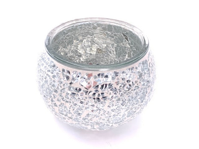 Großhandel – Teelichthalter aus Mosaikglas – Zilvergrijs