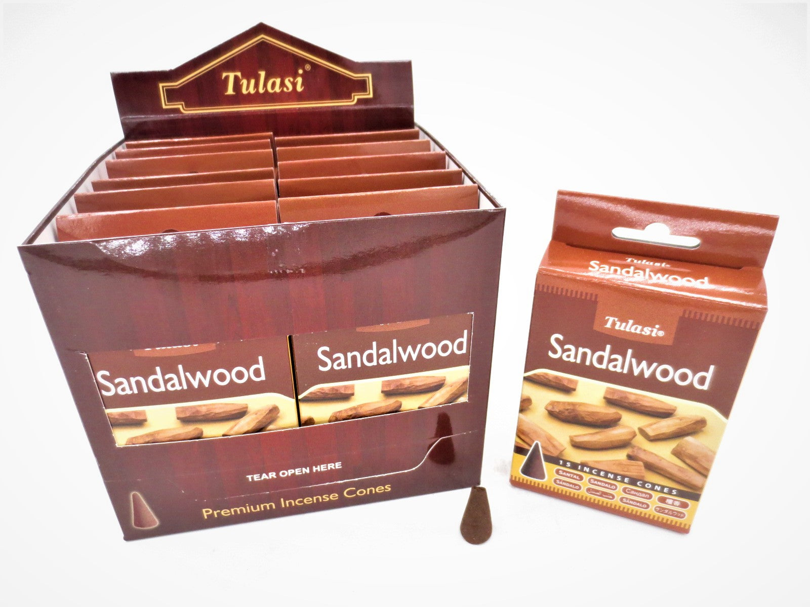 Groothandel – Tulasi Sandelhout Wierookkegels (Bruine Doos)