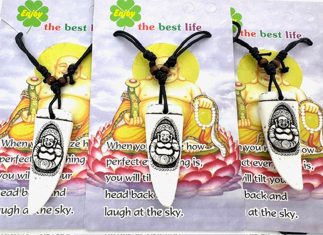 Groothandel - Witte Lachende Boeddha Tand Hanger Ketting